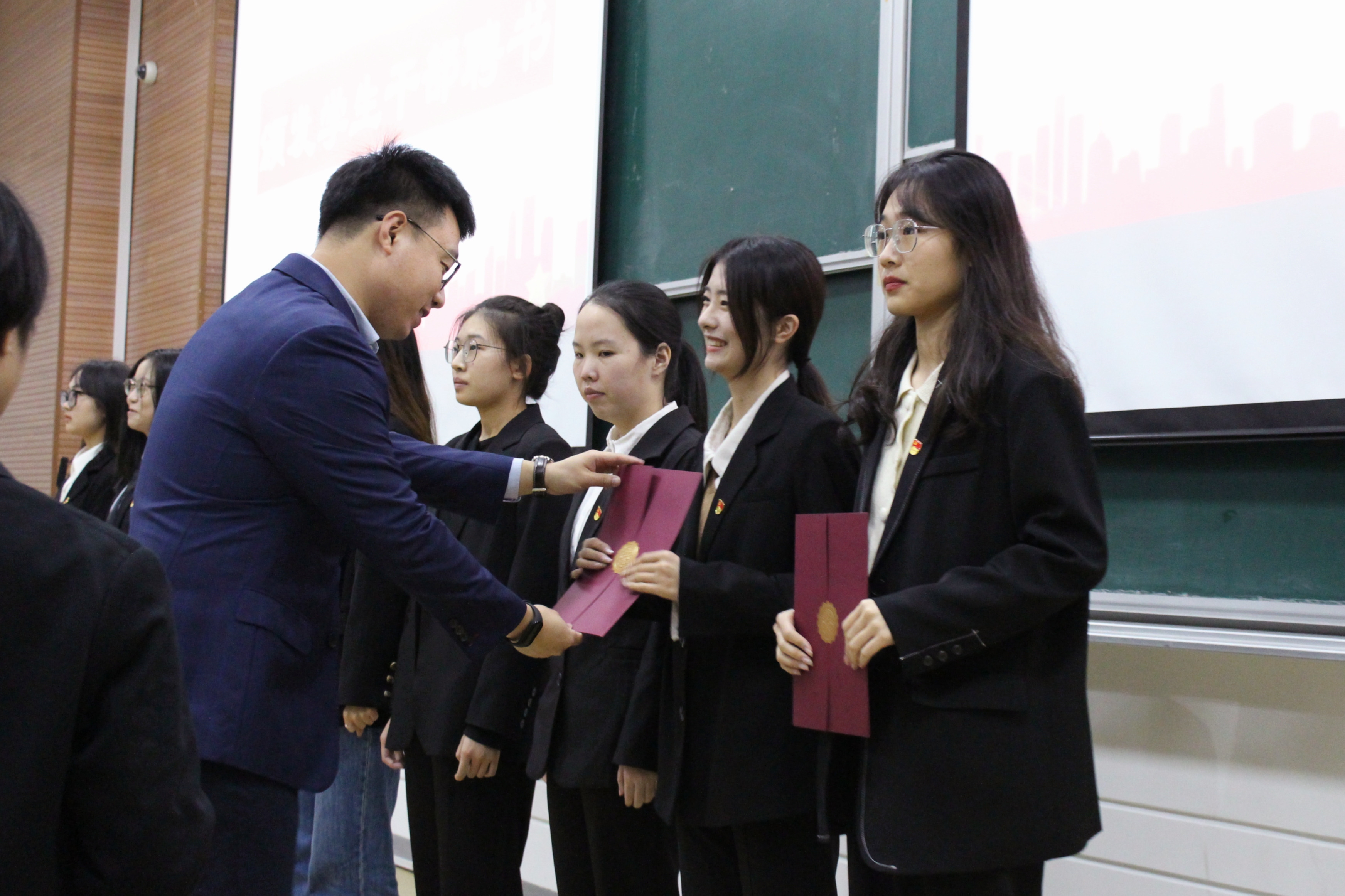 11月22日晚上18:00,JINNIAN金年会员工干部任命大会于SB102隆重召开。公司党委副书记、纪委书记胡鹿鸣,思政主管曲昊杨,思政副主管奚捷捷,团委书记李倩倩,团委副书记鲁晓玲,思政辅导员杨潮、吴鸯玲以及全体员工干部参加此次大会。本次大会由学院主持队徐浩博和曾欣钰主持。