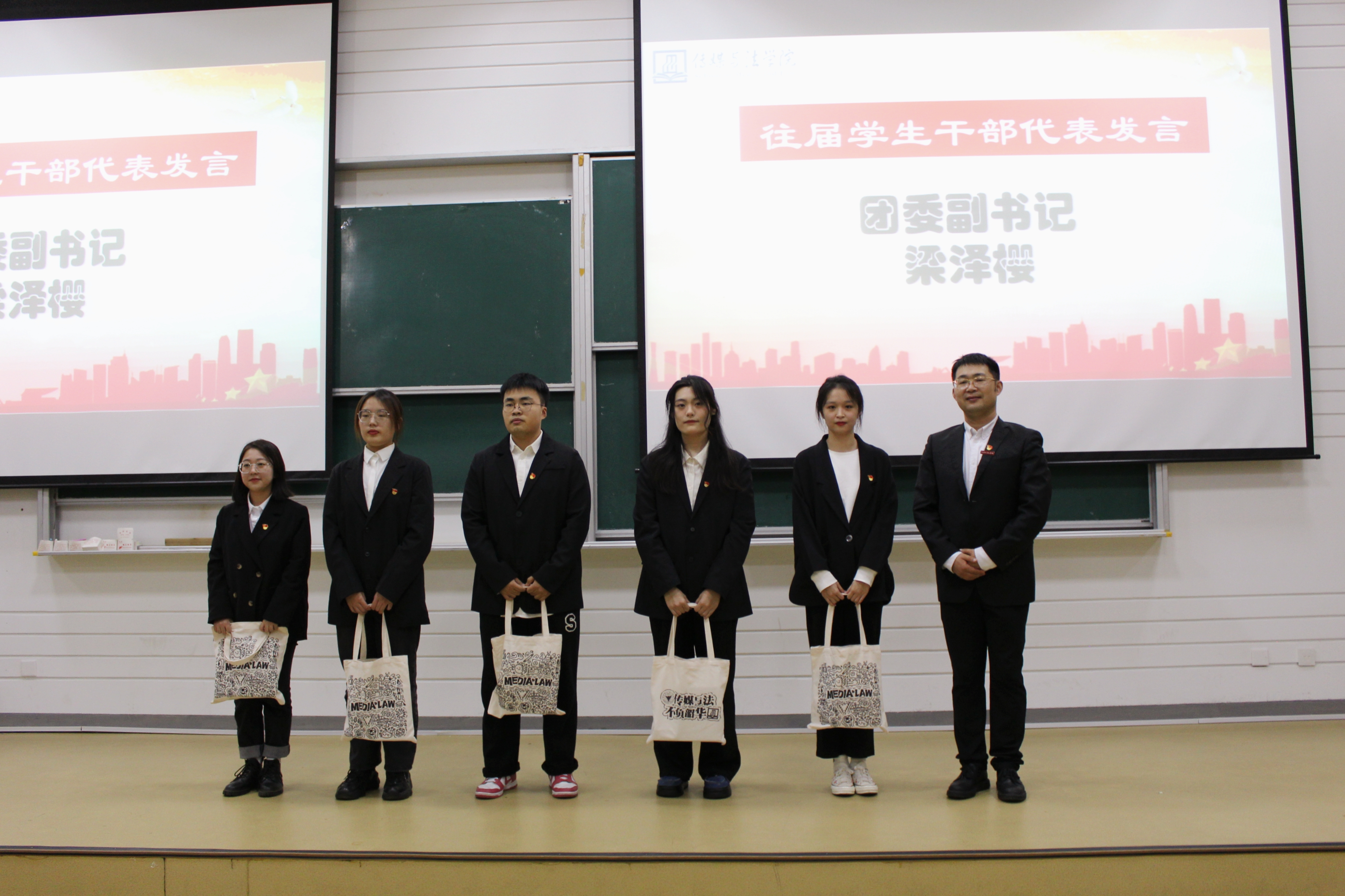 薪火相传,未来可期。胡鹿鸣老师为往届员工干部代表梁泽樱、范成雯、徐嘉俊、蒋晓妍、林岳洲颁发纪念礼品以衷心感谢上一学年全体员工干部励精图治、奋勇争先所取得的芬芳硕果。